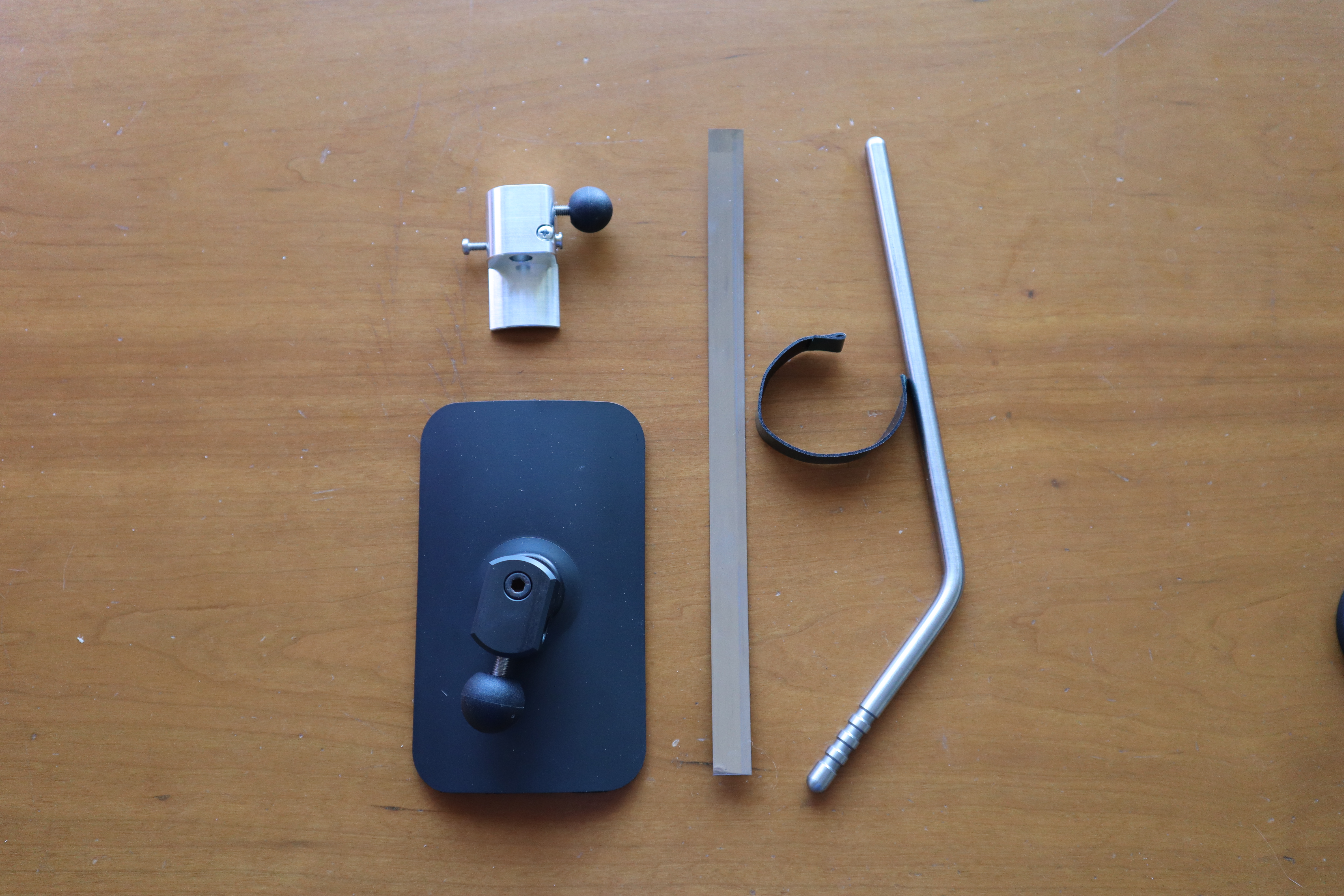 This version is different from the ones I had seen before, the baseplate that rests on your leg is anodized black and the bar that supports it now has preset notches for the adjustment screw to slot into. The strap that holds the support onto the bassoon is made of steel and I initially thought that I would be able to install this myself, but I have nothing at the house that could cut through the steel strap!
