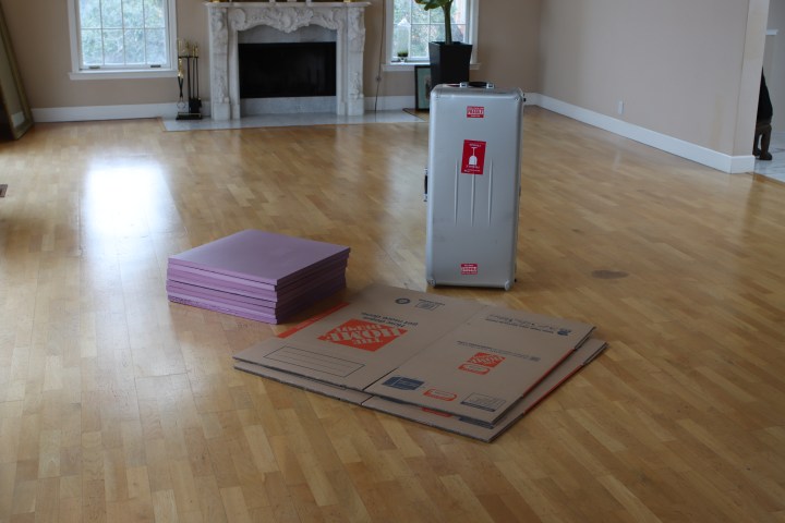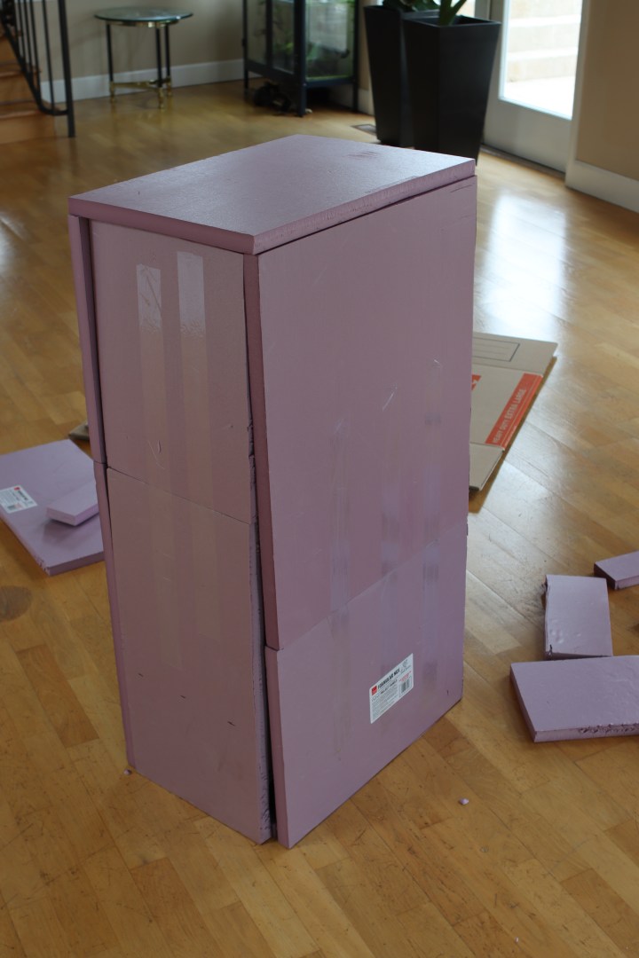 I used 7 pieces of 1” thick 2’x2′ foam board, this is used for wall insulation.