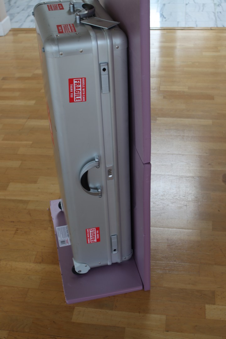 The shell of padding has some gaps as this is not an entirely square case, so I added an extra internal layer of foam fitted to the shape of the case. Around the handles especially need a extra layer, to push the outside layer flush over the handle will make the padding take a rounded shape.