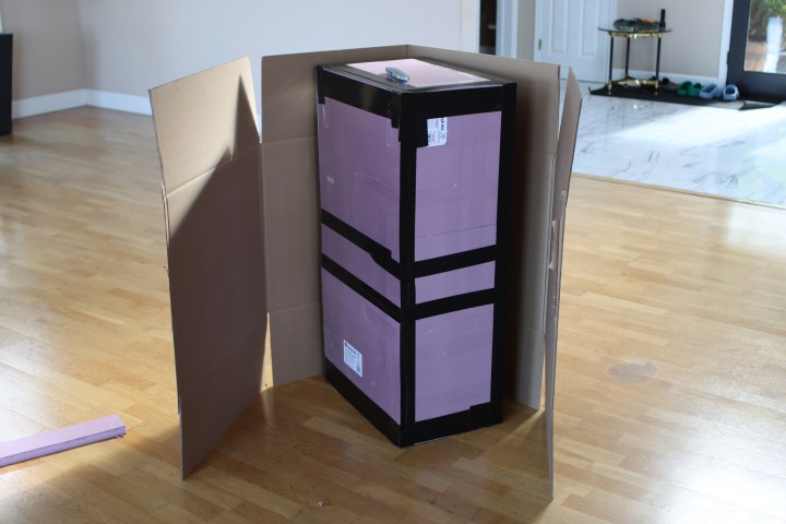 Hard to see when it’s all together, but each side has contact with multiple small pads attached inside of the larger pad. This will help if the package is ever dropped onto an edge or corner, the weight will distribute to multiple sides.