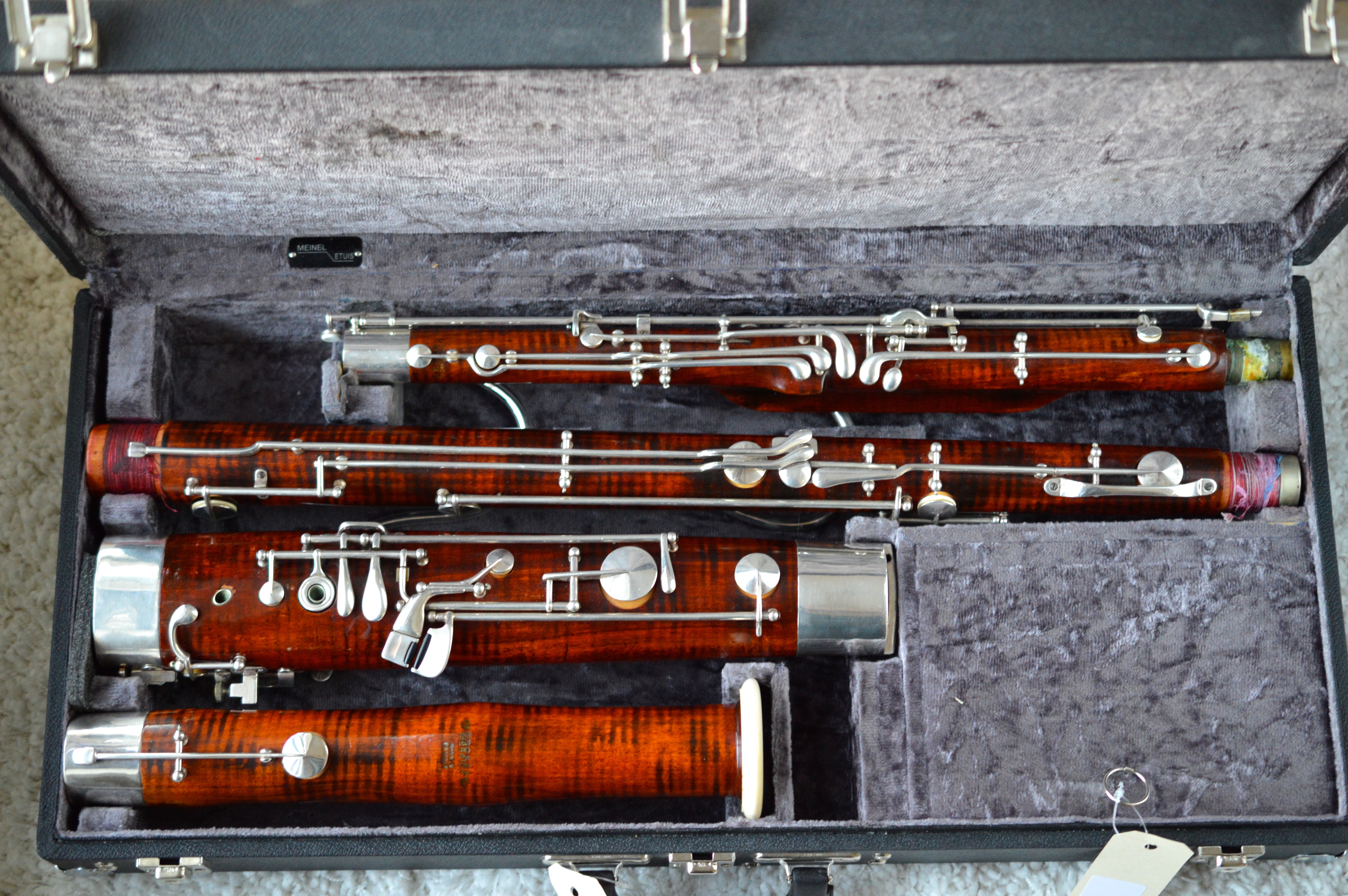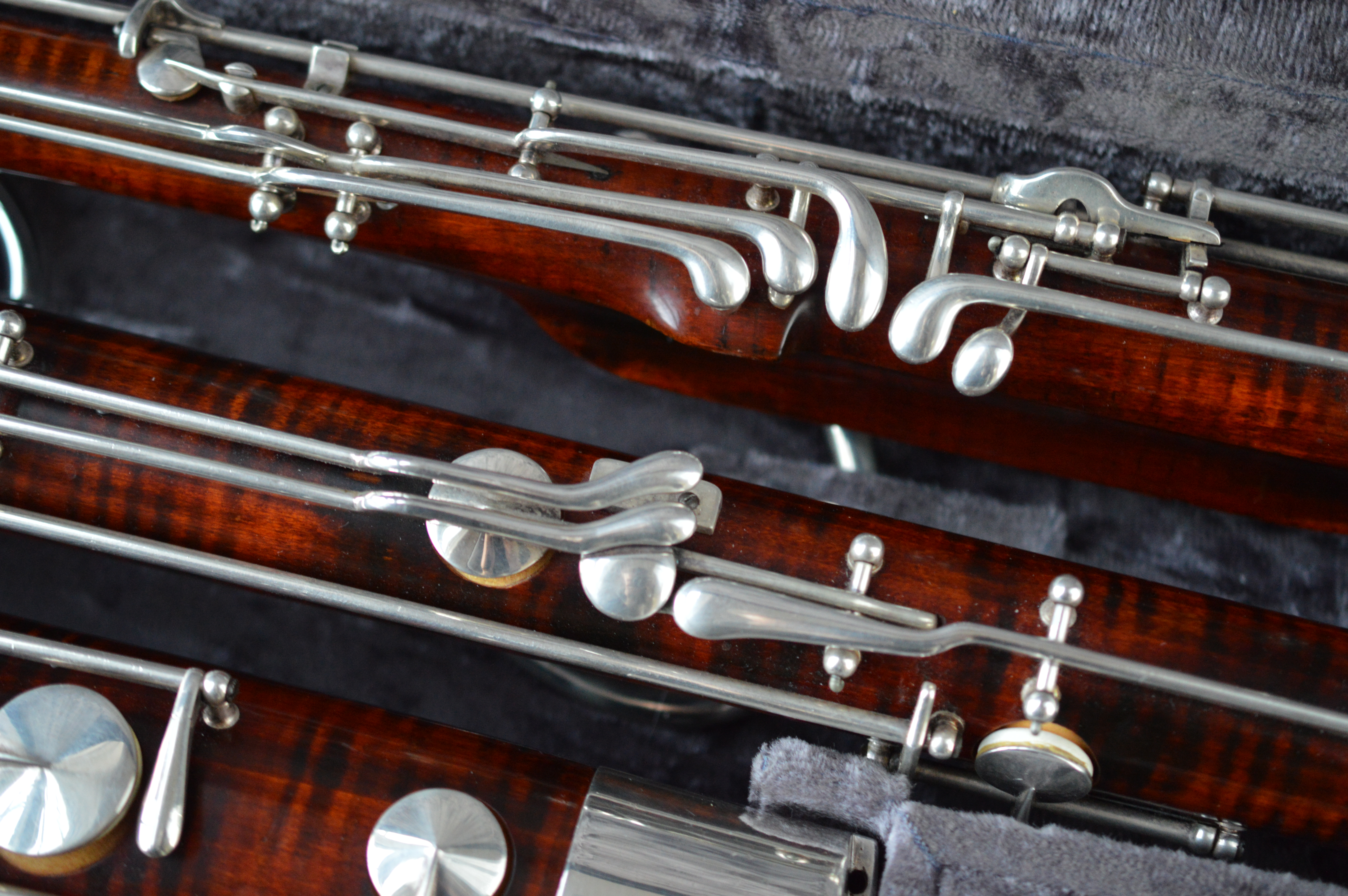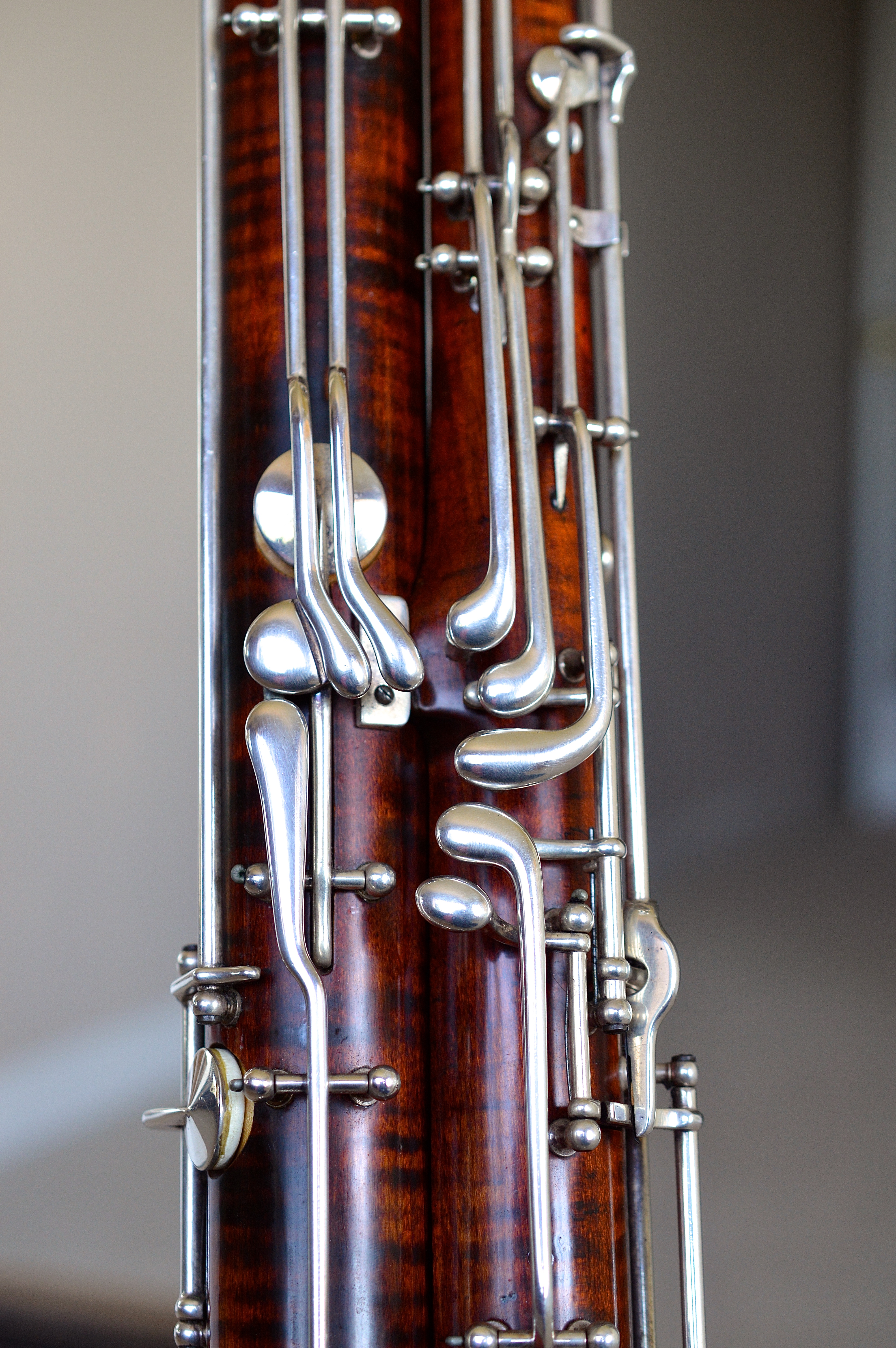 This extension is unique in that it doesn’t require any addition keywork added to the bassoon. Also unique in that it is fully chromatic, and so we can play Low A and the Bb. The operation is easy, push the Bb key halfway down for Bb and all the way down for A. This exact style of extension would not work for a gentlemen cut bassoon but a mechanism could probably be designed for that.