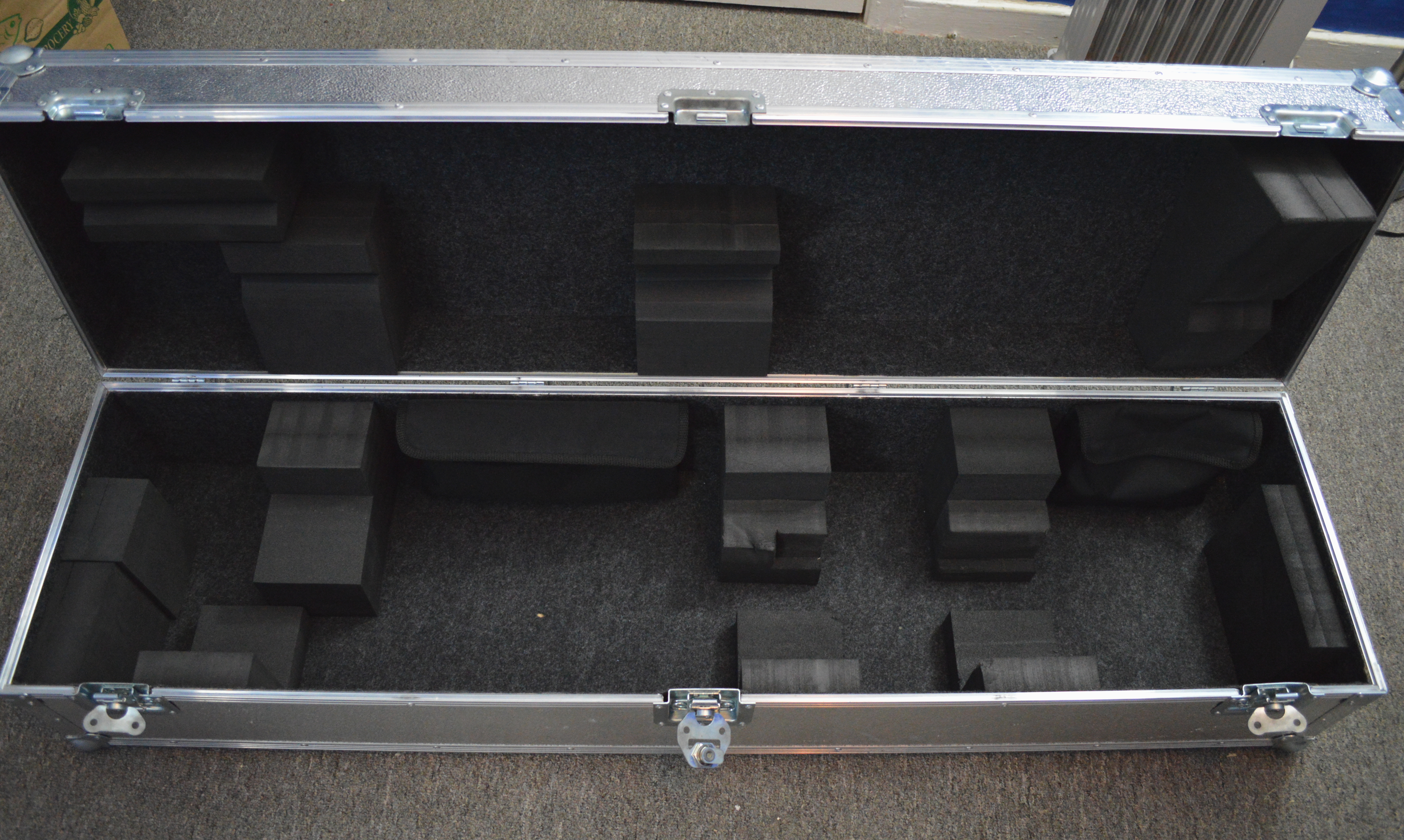The aluminum travel case is similar to what Maurice Rouillard makes at rouillardcases.com in Canada. However this case has rotating closures and wheels. The firm foam holds the CF in place, there are interior pouches for bocals and small accessories. This has been a great case but it is very large and heavy, I don’t need it for everyday use.
